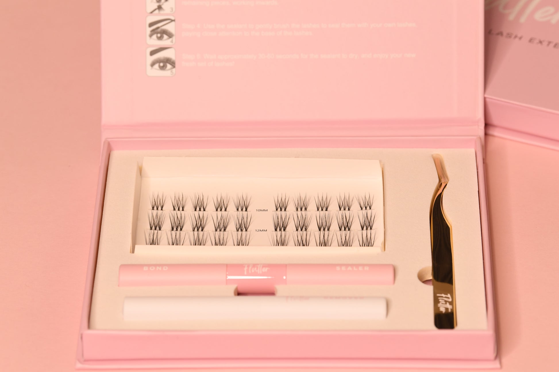 Each cluster is crafted from premium vegan PBT fibres and can be worn 3+ times — giving you up to eight weeks of lashes from one box.